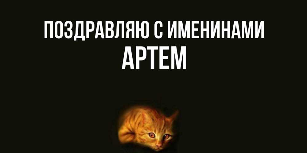 Открытка Поздравляю с именинами Артем. кареглазый кот. кот
