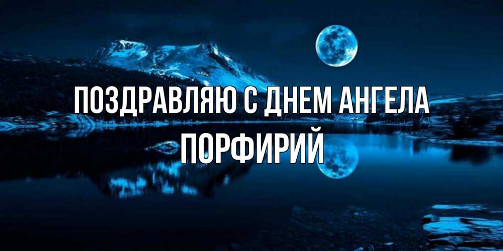 Открытка Поздравляю с днем Ангела Порфирий. Луна и озеро. луна, озеро, горы