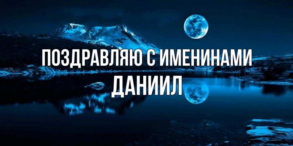 Открытка Поздравляю с именинами Даниил. Луна и озеро. луна, озеро, горы