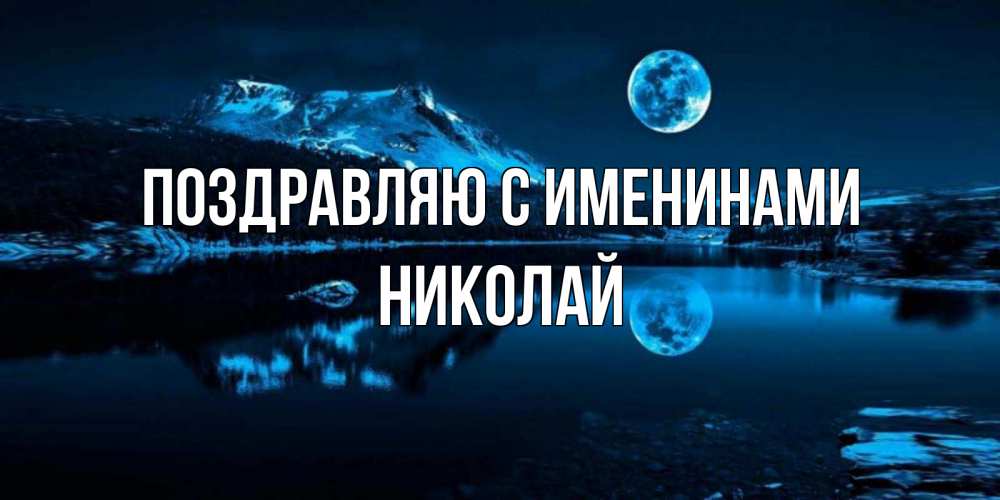 Открытка Поздравляю с именинами Николай. Луна и озеро. луна, озеро, горы