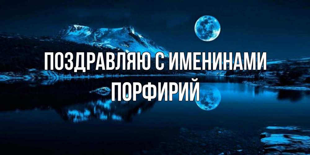 Открытка Поздравляю с именинами Порфирий. Луна и озеро. луна, озеро, горы