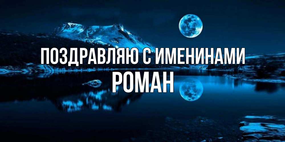 Открытка Поздравляю с именинами Роман. Луна и озеро. луна, озеро, горы