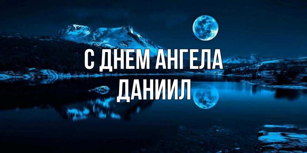 Открытка С днем Ангела Даниил. Луна и озеро. луна, озеро, горы