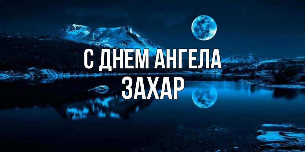 Открытка С днем Ангела Захар. Луна и озеро. луна, озеро, горы