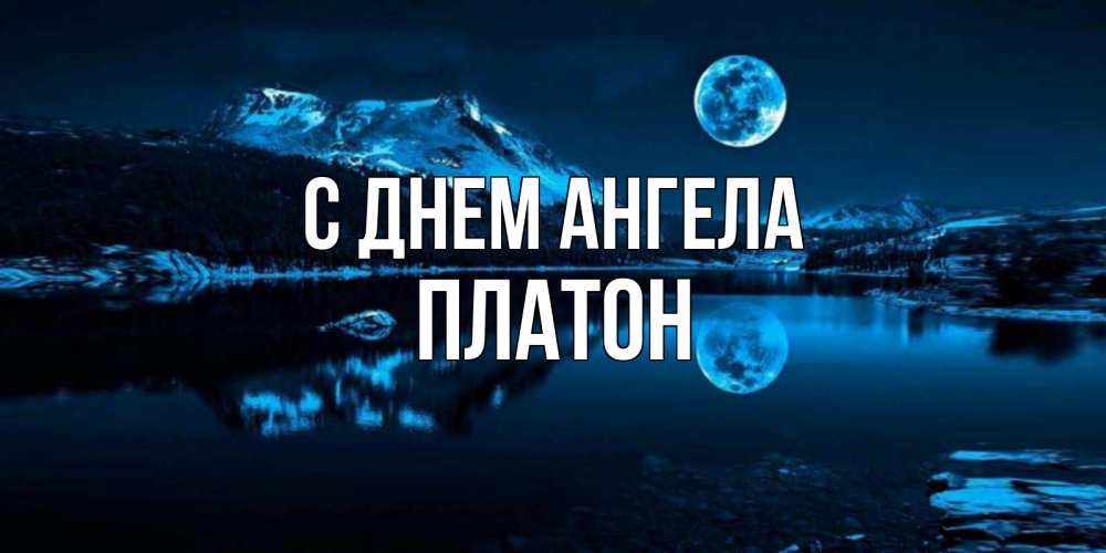 Открытка С днем Ангела Платон. Луна и озеро. луна, озеро, горы