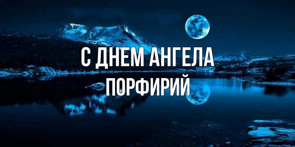 Открытка С днем Ангела Порфирий. Луна и озеро. луна, озеро, горы
