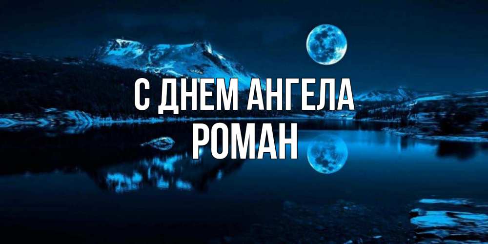 Открытка С днем Ангела Роман. Луна и озеро. луна, озеро, горы