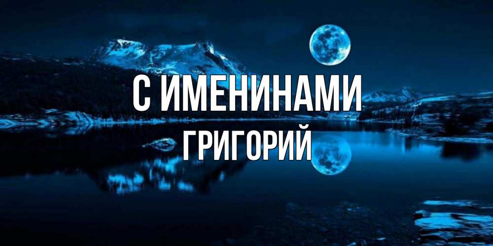 Открытка С именинами Григорий. Луна и озеро. луна, озеро, горы