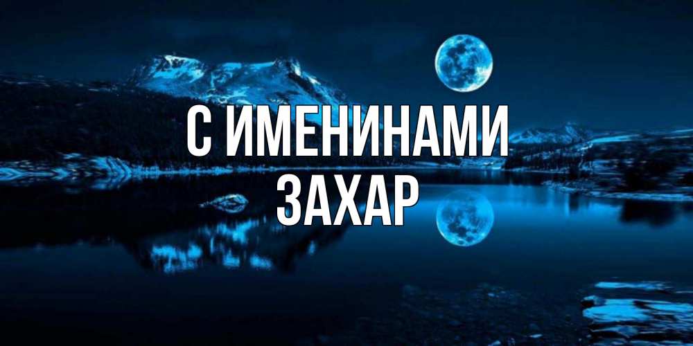 Открытка С именинами Захар. Луна и озеро. луна, озеро, горы