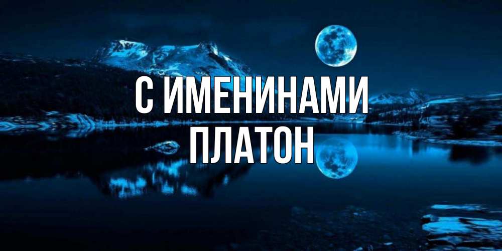 Открытка С именинами Платон. Луна и озеро. луна, озеро, горы
