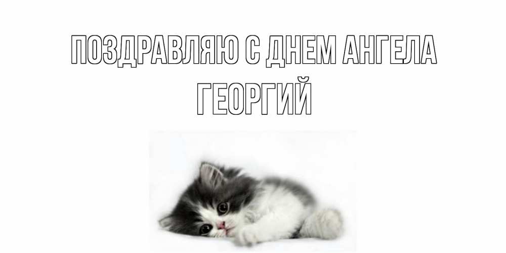 Открытка Поздравляю с днем Ангела Георгий. кот скучает. кот, скука