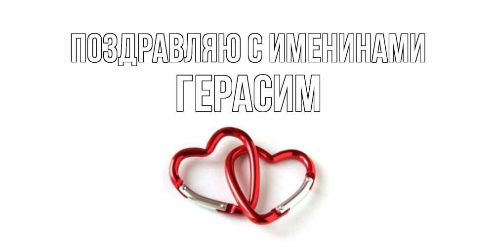 Открытка Поздравляю с именинами Герасим. Карабины в виде сердец. карабин, сердце