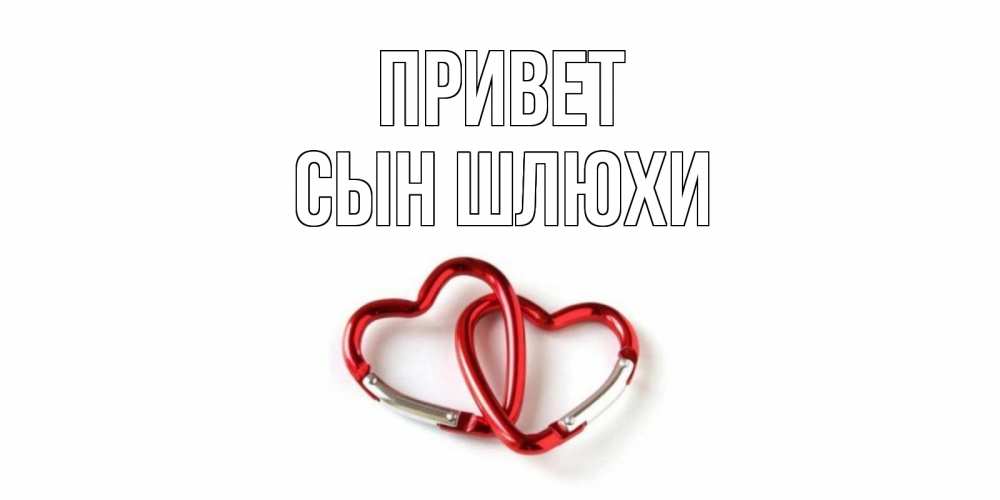Открытка Привет Сын шлюхи. Карабины в виде сердец. карабин, сердце