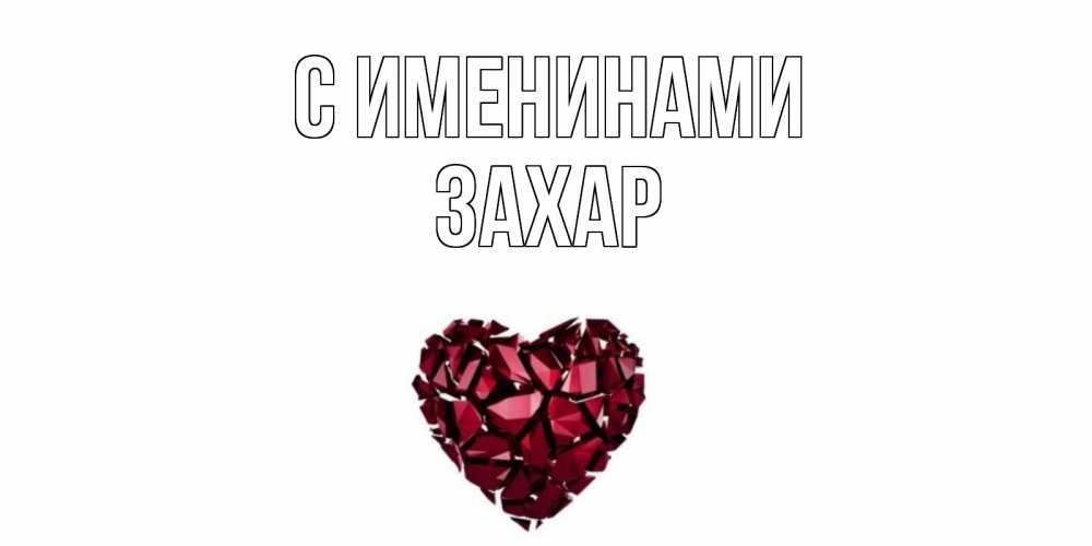 Открытка С именинами Захар. рубиновое сердце. рубин, любовь