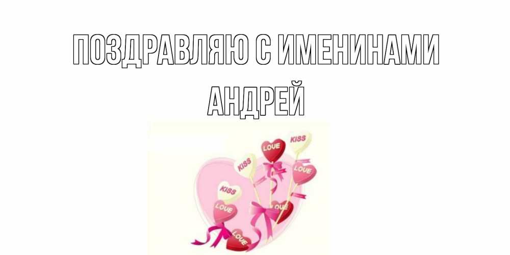 Открытка Поздравляю с именинами Андрей. сердце с леденцами поцелуями. сердце, леденцы