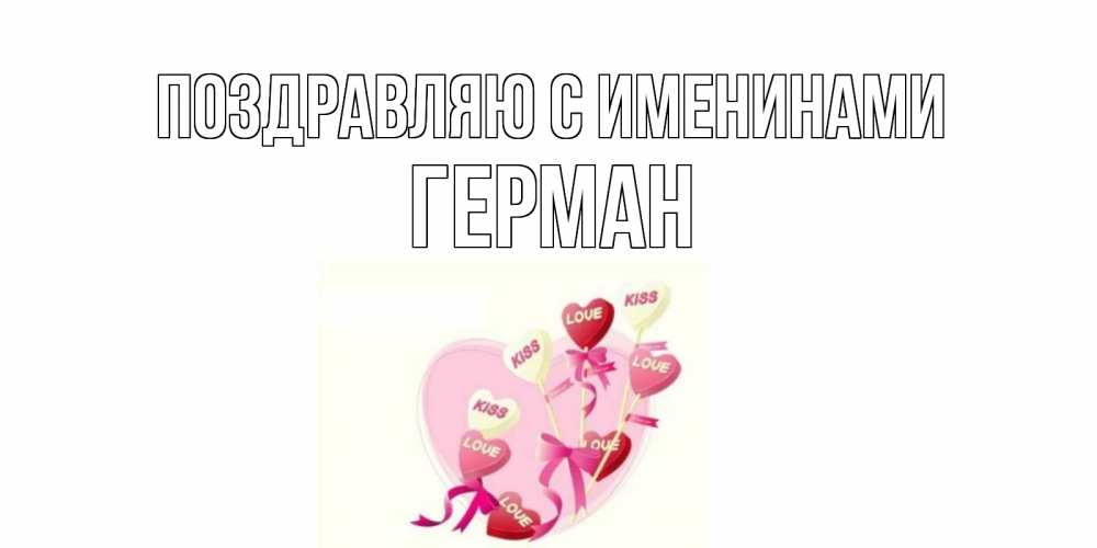 Открытка Поздравляю с именинами Герман. сердце с леденцами поцелуями. сердце, леденцы