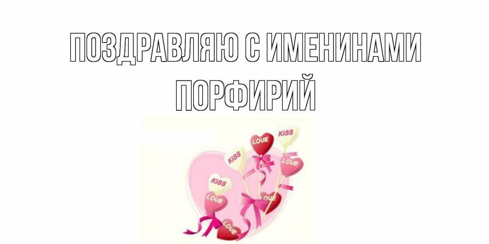 Открытка Поздравляю с именинами Порфирий. сердце с леденцами поцелуями. сердце, леденцы