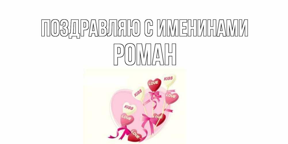 Открытка Поздравляю с именинами Роман. сердце с леденцами поцелуями. сердце, леденцы