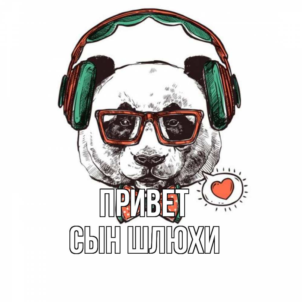 Открытка Привет Сын шлюхи. собака в наушниках желает удачи. деловой пес