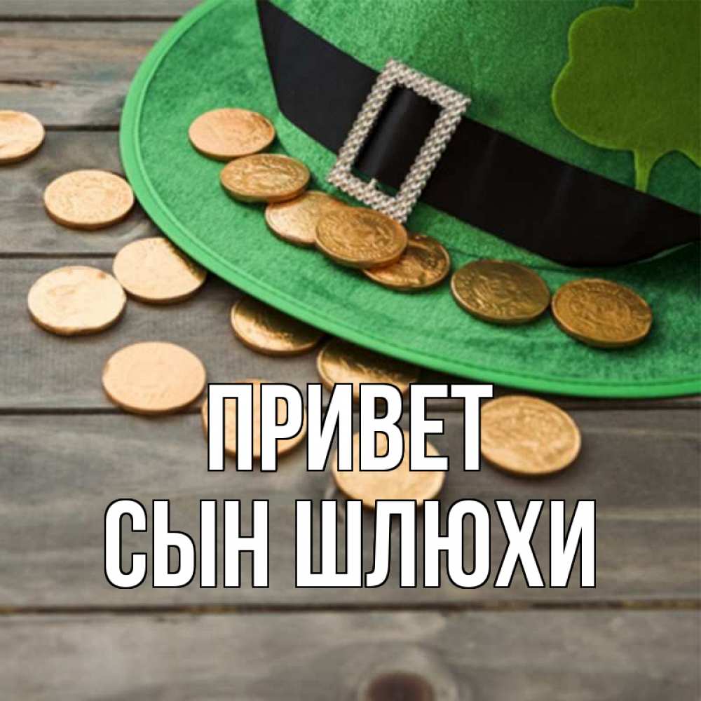 Открытка Привет Сын шлюхи. зеленая шляпа. монеты