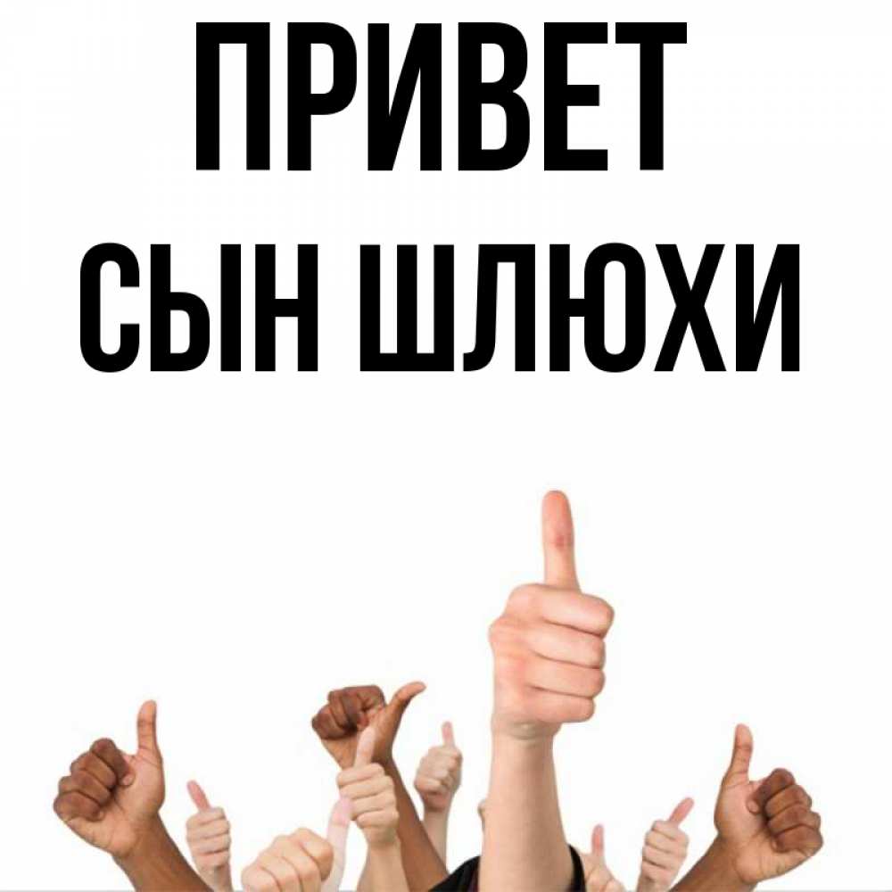 Открытка Привет Сын шлюхи. палец вверх. молодцом