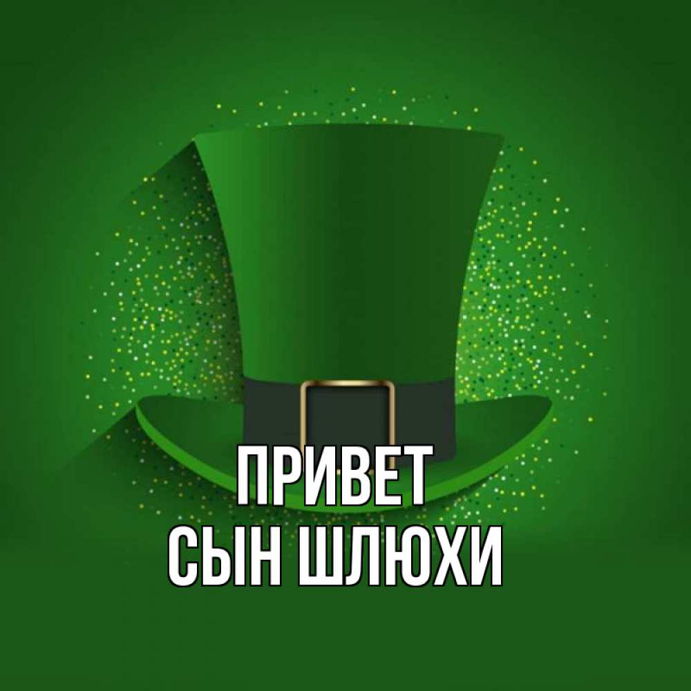 Открытка Привет Сын шлюхи. зеленая шляпа на зеленом фоне. фокусник