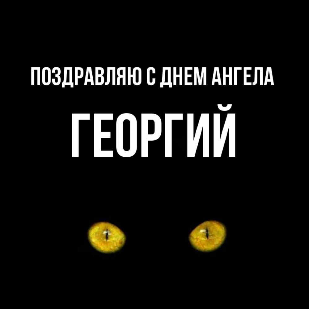 Открытка Поздравляю с днем Ангела Георгий. Карие глаза кота на черном фоне. сладких снов бесстрашный мой дружочек