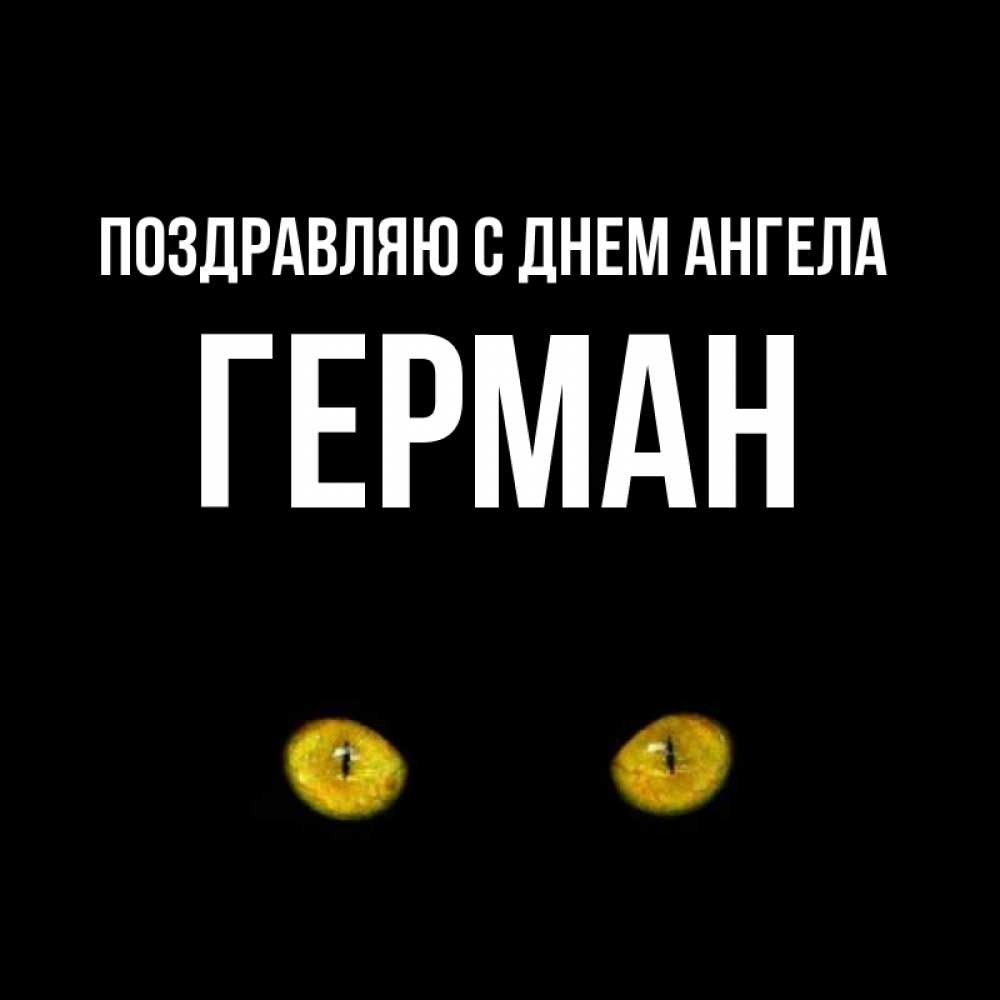 Открытка Поздравляю с днем Ангела Герман. Карие глаза кота на черном фоне. сладких снов бесстрашный мой дружочек