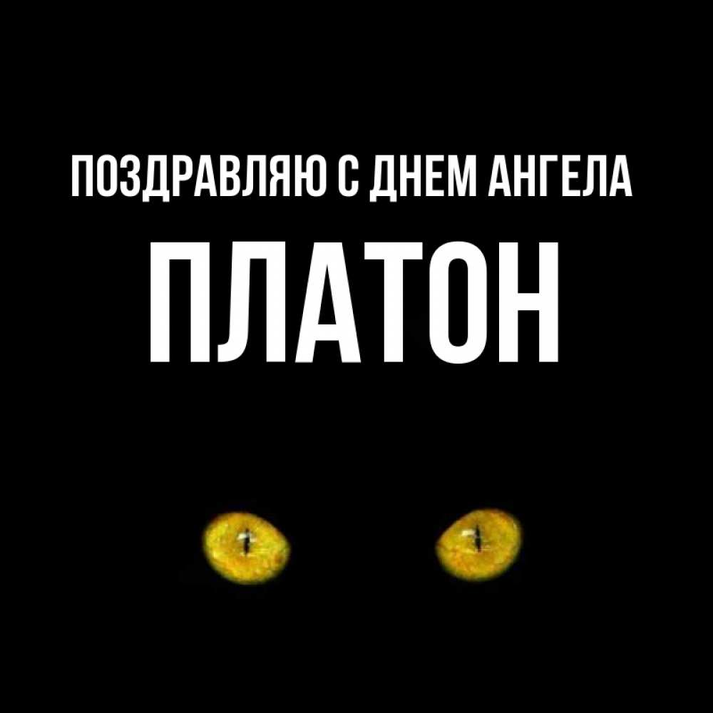 Открытка Поздравляю с днем Ангела Платон. Карие глаза кота на черном фоне. сладких снов бесстрашный мой дружочек