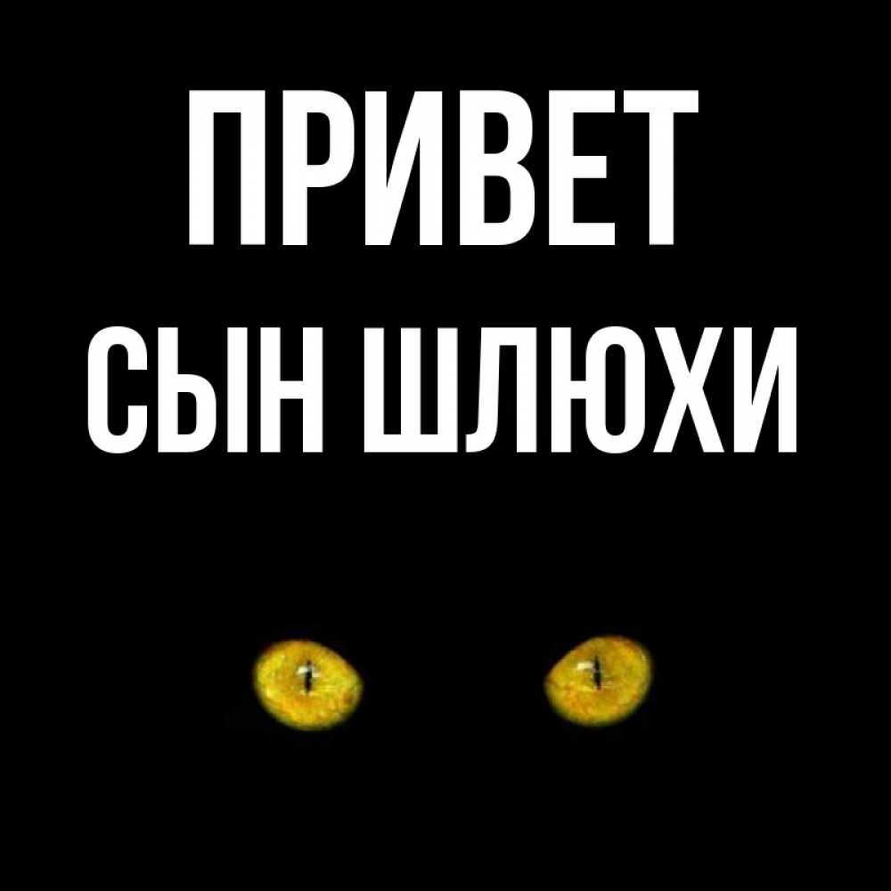Открытка Привет Сын шлюхи. Карие глаза кота на черном фоне. сладких снов бесстрашный мой дружочек