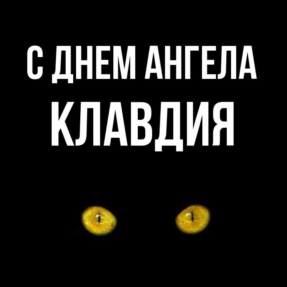 Открытка С днем Ангела Клавдия. Карие глаза кота на черном фоне. сладких снов бесстрашный мой дружочек