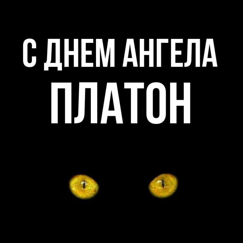 Открытка С днем Ангела Платон. Карие глаза кота на черном фоне. сладких снов бесстрашный мой дружочек