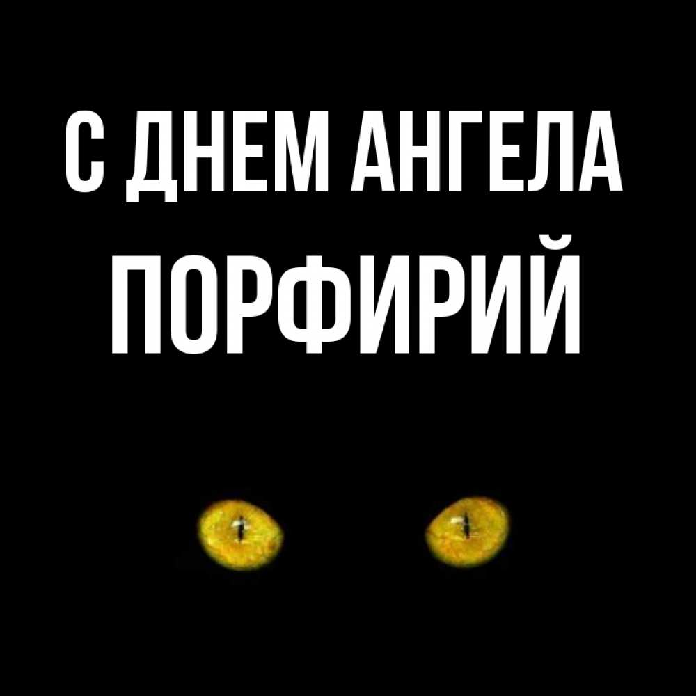 Открытка С днем Ангела Порфирий. Карие глаза кота на черном фоне. сладких снов бесстрашный мой дружочек