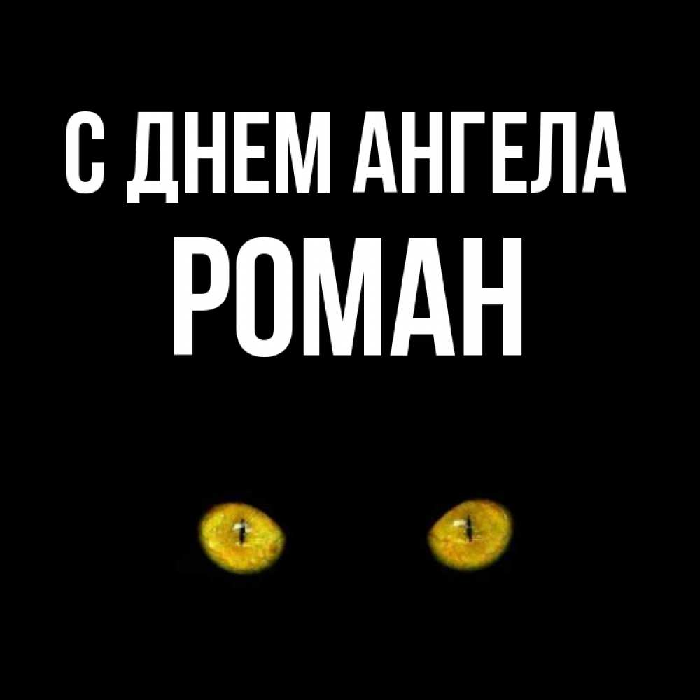 Открытка С днем Ангела Роман. Карие глаза кота на черном фоне. сладких снов бесстрашный мой дружочек