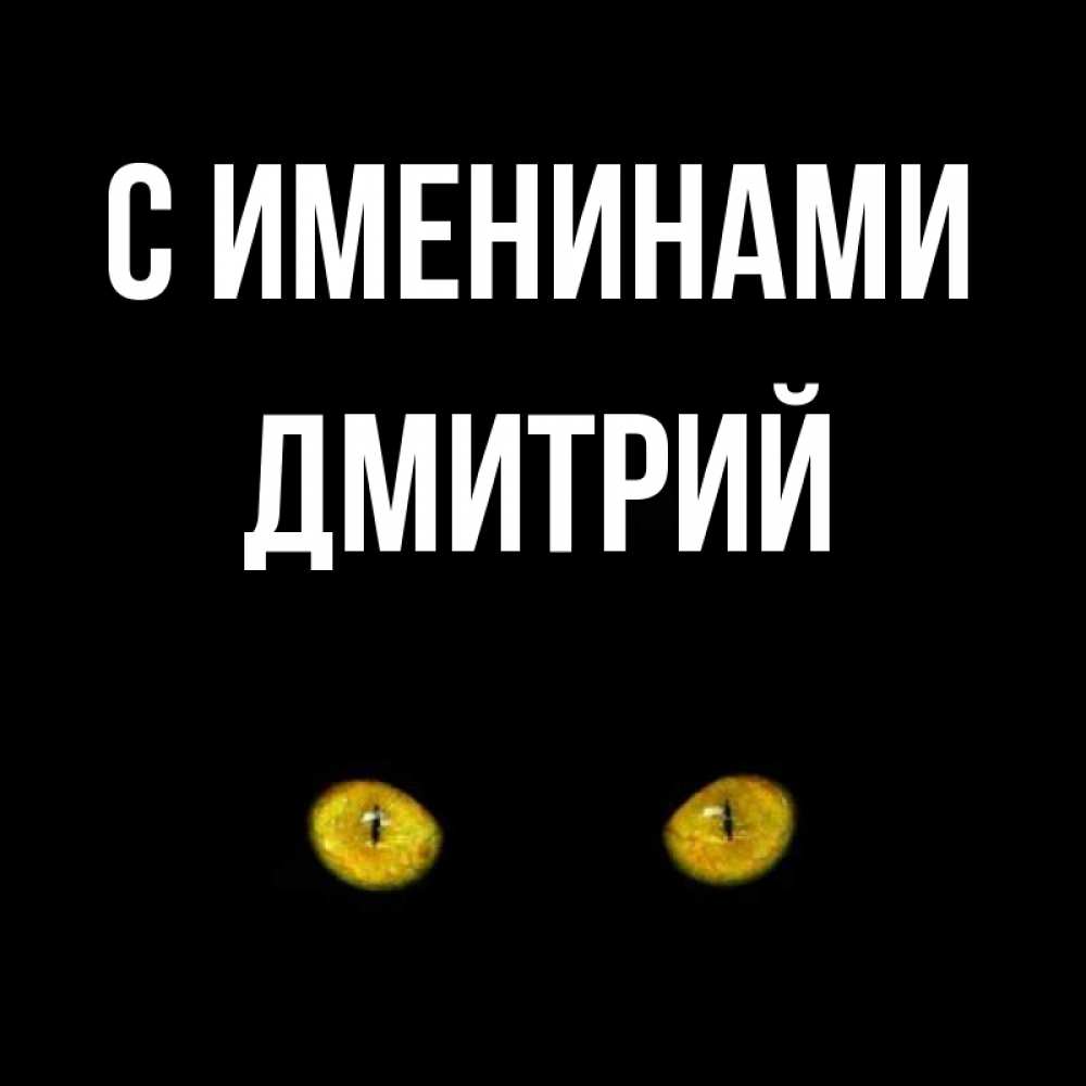 Открытка С именинами Дмитрий. Карие глаза кота на черном фоне. сладких снов бесстрашный мой дружочек