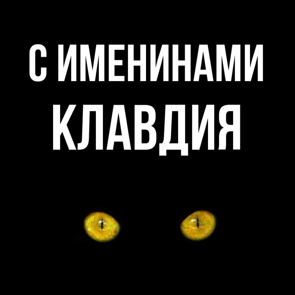 Открытка С именинами Клавдия. Карие глаза кота на черном фоне. сладких снов бесстрашный мой дружочек