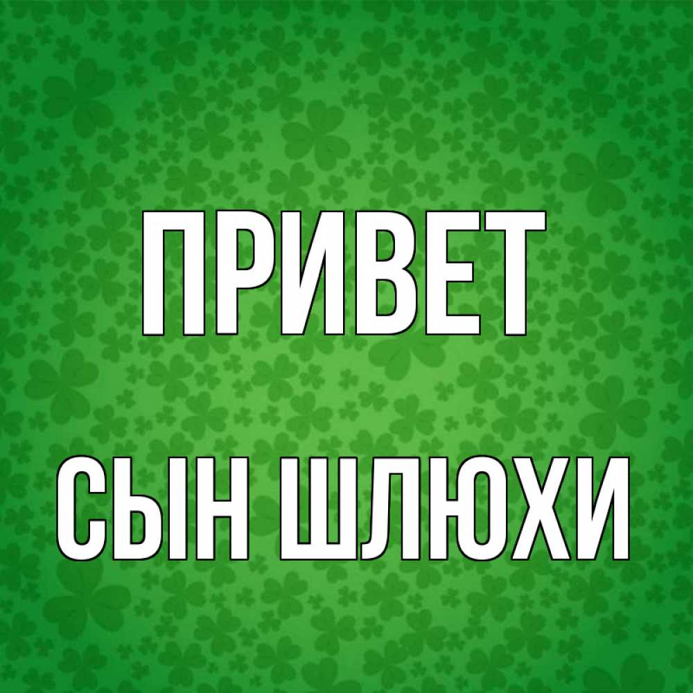 Открытка Привет Сын шлюхи. листья клевера на фоне. много листочков на удачу