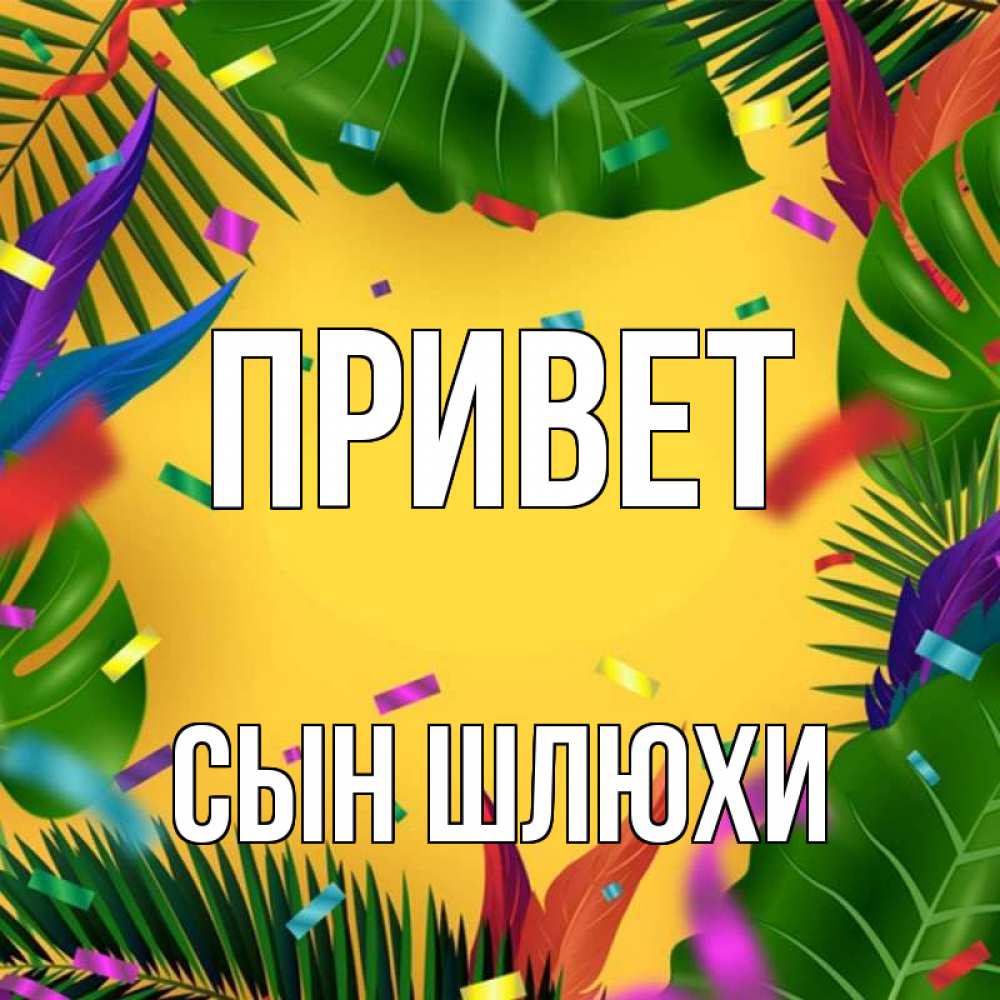 Открытка Привет Сын шлюхи. конфети. тропики