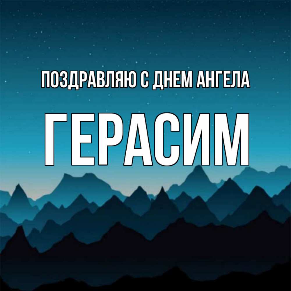 Открытка Поздравляю с днем Ангела Герасим. Спокойной ночи векторные горы. сладких снов звездное небо
