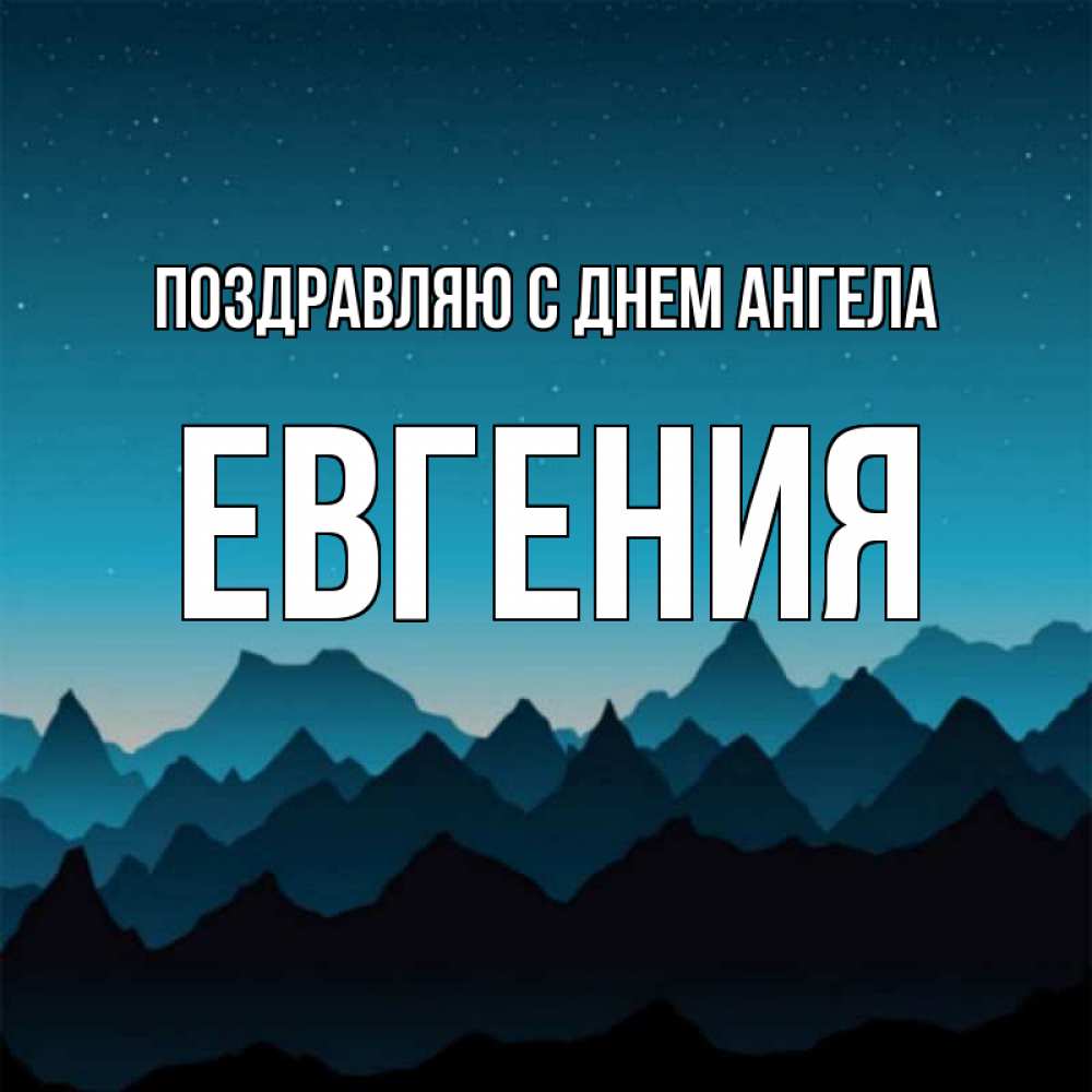 Открытка Поздравляю с днем Ангела Евгения. Спокойной ночи векторные горы. сладких снов звездное небо