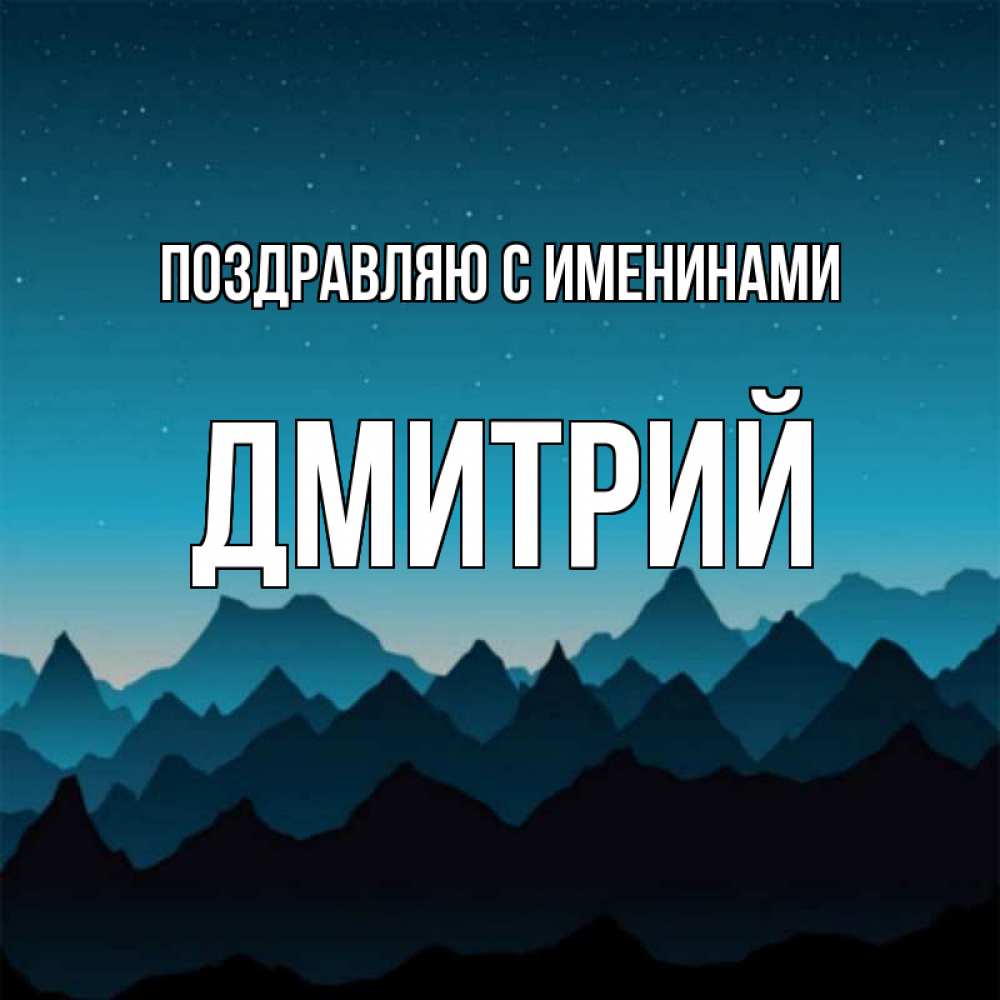 Открытка Поздравляю с именинами Дмитрий. Спокойной ночи векторные горы. сладких снов звездное небо