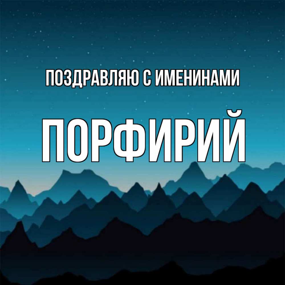 Открытка Поздравляю с именинами Порфирий. Спокойной ночи векторные горы. сладких снов звездное небо