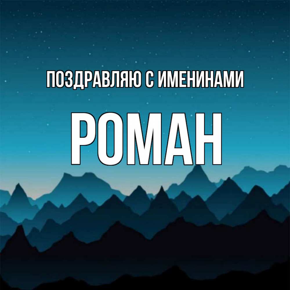 Открытка Поздравляю с именинами Роман. Спокойной ночи векторные горы. сладких снов звездное небо