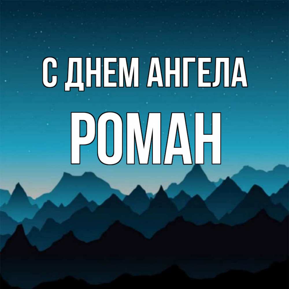 Открытка С днем Ангела Роман. Спокойной ночи векторные горы. сладких снов звездное небо