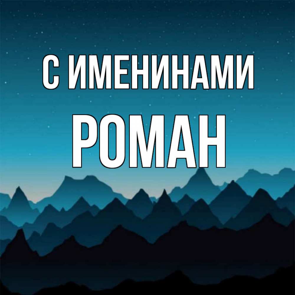 Открытка С именинами Роман. Спокойной ночи векторные горы. сладких снов звездное небо