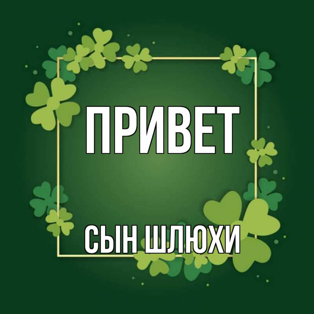 Открытка Привет Сын шлюхи. клевер 3. квадратная рамка 3