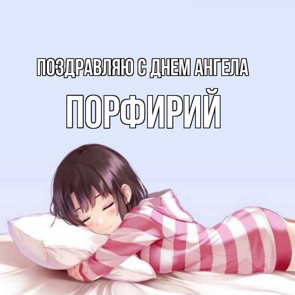 Открытка Поздравляю с днем Ангела Порфирий. Девушка аниме спит. сладких снов в стиле аниме