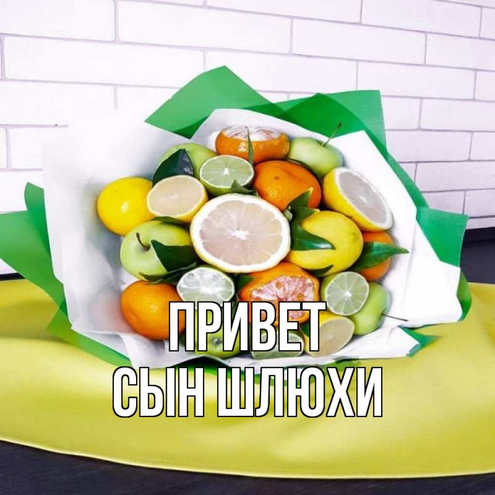 Открытка Привет Сын шлюхи. Букет из лимонов апельсинов и яблок для больного. витаминный букет из цитрусовых и яблок