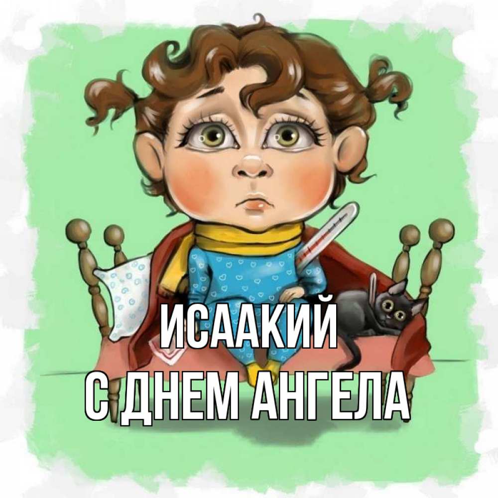 Открытка Исаакий С днем ангела. девочка простыла. лежит с котом и градусниками