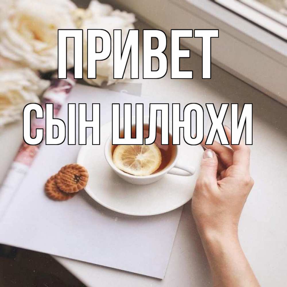 Открытка Привет Сын шлюхи. чай с лимоном. и печеньками